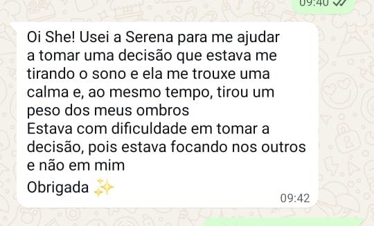 Não! A SerenaBot organiza a conversa com o ChatGPT para que você se sinta acolhida, compreendida e orientada, sem respostas genéricas ou vazias. A experiência é fluida, empática e prática.